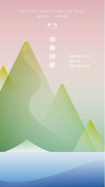 山海同席,以席为窗,以餐识闽。多年以来,厦航空厨一直以弘扬闽菜文化,向世界推广福建风土人文为愿景之一。围绕“山海同席”主题,厦航空厨结合系列风味餐谱展开菜单的设计构思,菜单整体简洁、精巧、别致。同时,“山海同席”闽菜菜单也将成为厦航航班传播闽菜文化的一大全新载体。