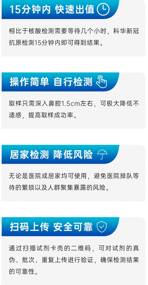 目前,科华新冠抗原检测试剂盒已登陆高格健康大药房、珠海免税MALL小程序,价格实惠只需8.8元/人份,即日起接受预订,订单将从5月15日起陆续发货(亦支持高格健康大药房线下自提)。