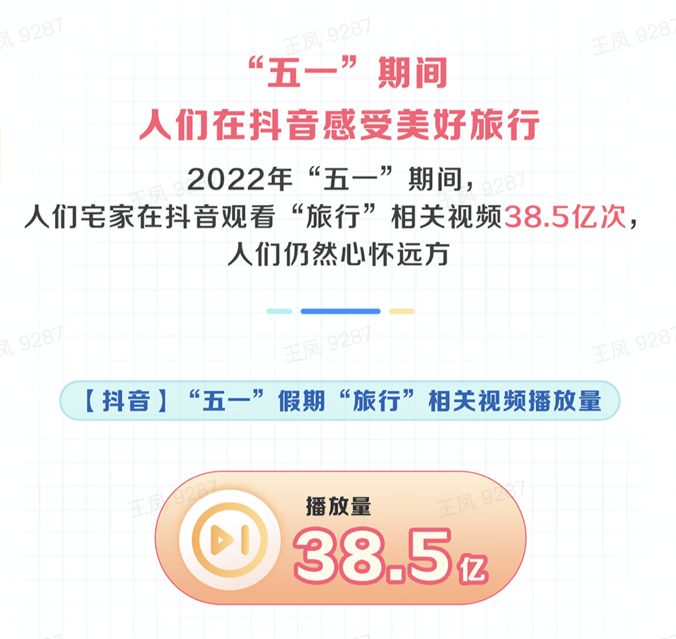 这个五一,抖音网友发布游玩打卡视频超1000万次,虽然抖音打卡视频量同比下降10%,但人们依然关注购物、美食、休闲娱乐等内容,既关注家门口的商超公园,也关注远方的海滩和日出,人们通过云游、打卡共同期待疫情缓解肆意游玩。