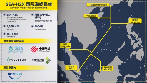 中国移动国际有限公司(CMI)、中国联通国际有限公司(CUG)、Converge Information and Communications Technology Solutions, Inc.(Converge)以及PPTEL SEA H2X Sdn. Bhd(PPTEL SEA-H2X)近日宣布计划合作铺设SEA-H2X国际海缆系统,为亚洲及全球数字化转型扩容提速。SEA-H2X将连接中国海南、中国香港、菲律宾、泰国、马来西亚及新加坡等地,进一步可延伸至越南、柬埔寨以及印度尼西亚,建成后将极大提升亚洲区域内的网络连接性。SEA-H2X由国际海缆联盟成员共同运营,由华海通信技术有限公司(HMN Tech)承建。