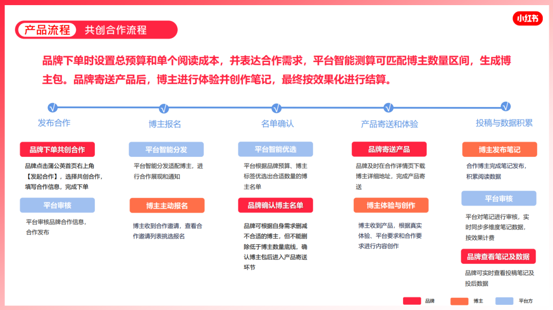 在「共创合作」模式下,博主基于产品试用产出的测评笔记,更具原生感,可以帮助品牌快速收获来自博主的真实反馈,积累种子内容。同时,多篇笔记同时赛跑,品牌能够更清晰地看出哪篇笔记的实际效果更好,验证笔记是否具备加大投放广告流量的价值,及早发现有爆文潜力的笔记,以低成本撬动爆文生产。