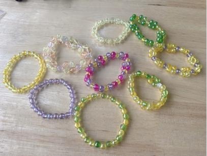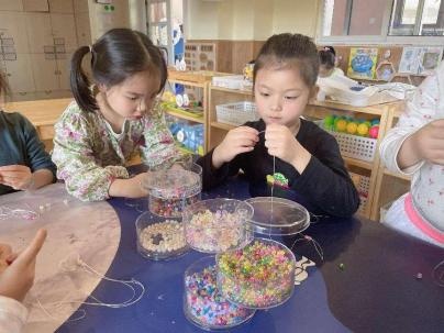 近段时间,紫金港幼儿园大三班的孩子们迷上了串手链、做钥匙扣,班级手工区里的手工制品也越来越多,无处堆放。怎么办呢?有孩子提议说“可以拿出去卖呀!”大家很是赞同,于是,紫金西苑和港湾家园里的小地摊计划就开始了!