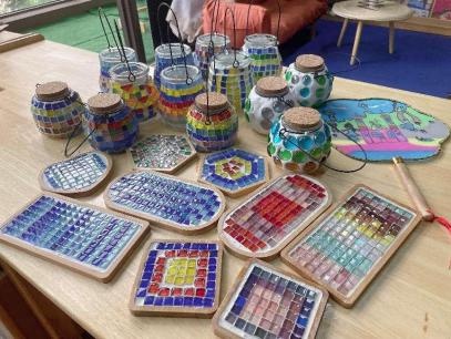 在此基础上,第二次全班分组摆摊行动开始了。本次收入126元,和上一次收入相比,业绩有所下滑,反馈问题后,本次采取的措施是——各组根据需求补货;开发新产品,如马赛克杯垫、小夜灯、彩绘扇子;开发新业务,支持定制钥匙扣和定制扇子;加大宣传,做宣传海报到各班进行宣传。
