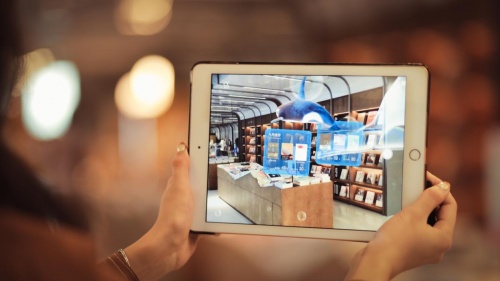 除AR导航寻书,新技术的加入还融合了感官体验,使阅读变得更加生动立体。打开手机AR对准推荐书的封面扫码,相关类别的新书推荐理由、推荐指数等就能通过AR全息呈现在读者面前;阅读疲倦时拿起手机扫一扫周围环境,展现在手机镜头前的是美丽的海洋生物在自由遨游,给读者带来了全新的阅读体验。