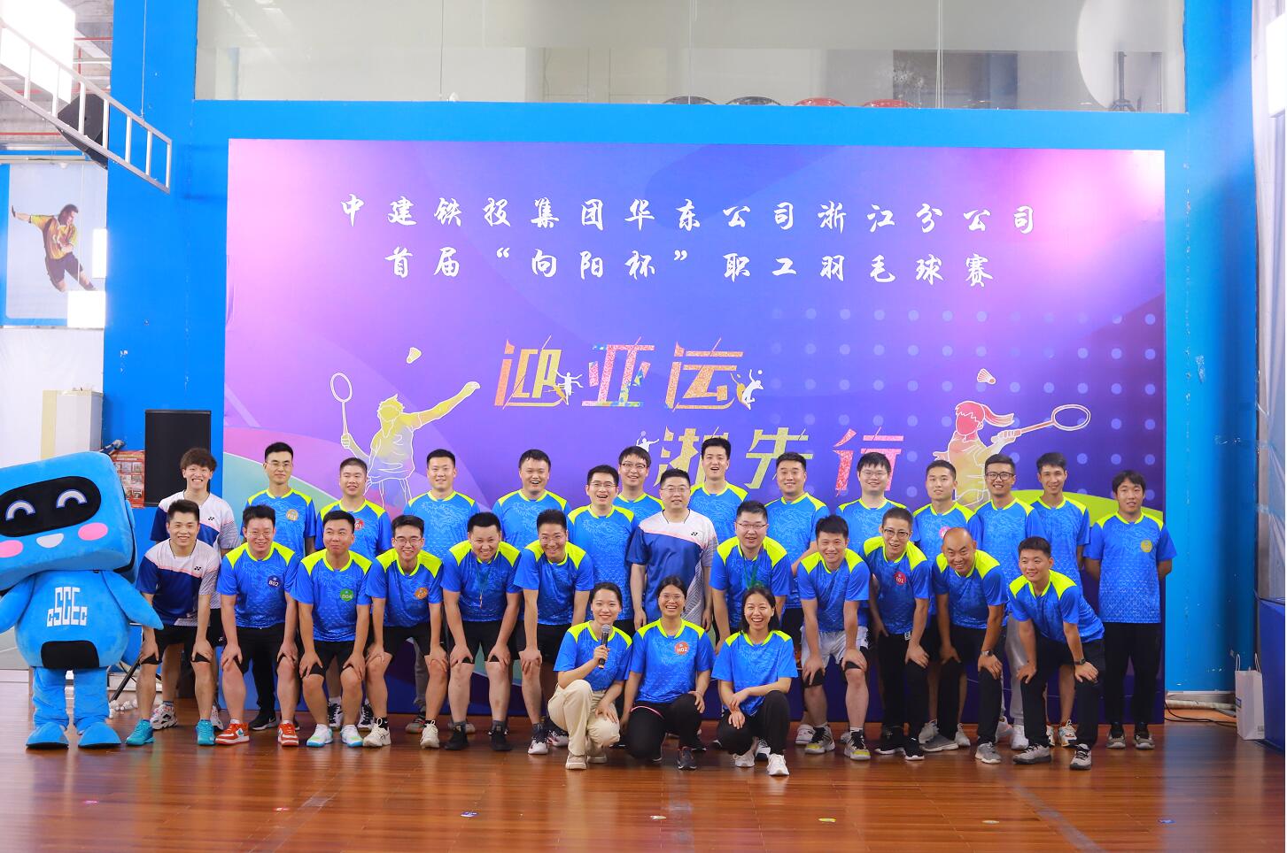 迎亚运,“浙”先行。5月28日,中建铁投集团华东公司浙江分公司首届“向阳杯”职工羽毛球赛在杭州举行,公司党委副书记、工会主席赵云书记带队出席了比赛。