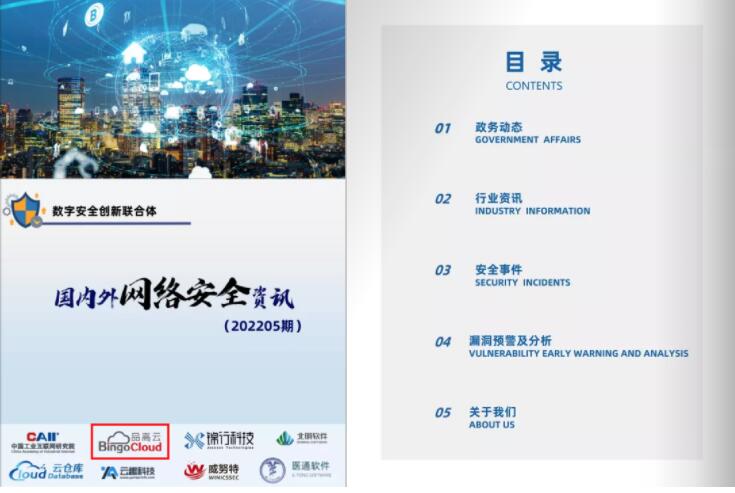 近日,由数字安全创新联合体主编、品高股份作为发起单位之一参与联合编制的《国内外网络安全资讯》月刊正式发布!