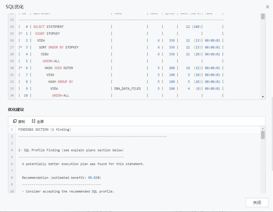 在SQL语句的优化上,多维分析综合了Oracle的STA商业工具、Percona Toolkit和SOAR等开源系统,结合规则系统,给用户提供专业和直观的查询计划分析和优化建议。