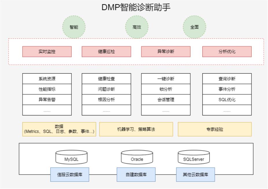 与传统数据库管理方式相比,智能诊断助手具有实时监控、健康巡检、智能诊断、多维分析四个特点。