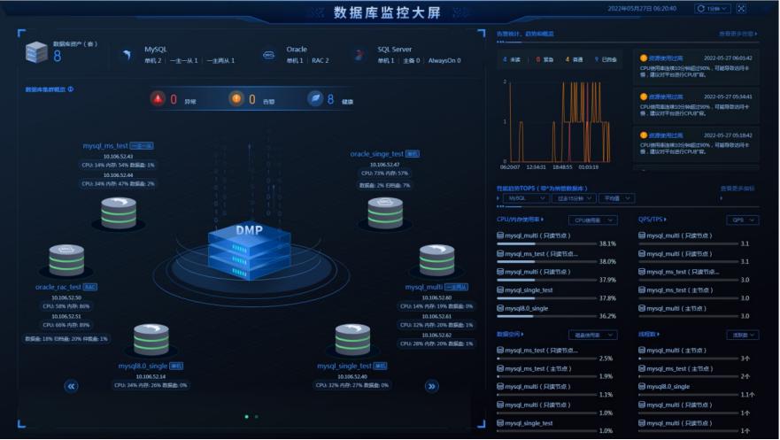 该平台搭载智能诊断助手,帮助企业开展数据库的监控、巡检、诊断、优化等多项工作,支持MySQL、Oracle、SQLServer等主流的数据库产品。