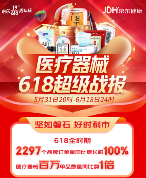 今年618,京东健康通过优质的全品类健康商品与专业的全场景健康服务,全面助力复工复产,守护“最美人间烟火气”。未来,京东健康将携手众多医疗器械品牌,为消费者提供更多元化、个性化的医疗器械产品,帮助消费者拉满“健康安全感”!