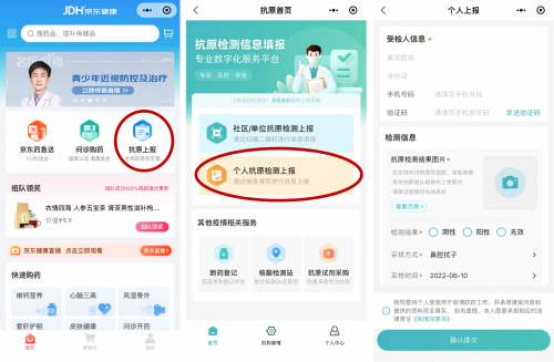 此外,针对全国各地开始推进的新冠监测模式“抗原筛查、核酸诊断”,今年618期间,京东健康还上线了“新冠抗原检测数字化服务”平台。该平台通过微信小程序“京东健康”免费开放,不仅为用户个人抗原自测提供上报途径,同时还可以帮助社区、医疗机构以及企业单位开展群体抗原检测信息采集与结果上报等管理工作,提高信息统计效率。