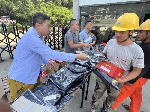 活动上,项目的志愿者们为受灾的工友送上衣物、运动鞋等物资,统计他们此次雨灾的损失情况,安抚转移工人的情绪,嘱咐他们要注意身体并转达了支部书记张惠聪对他们的关心和问候。