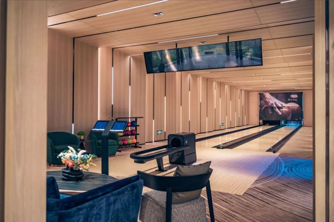 穿行2500平的臻庭会所,会遇见恒温泳池、健身房、普拉提室,还有罕见的红酒雪茄吧、保龄球馆、室内篮球羽毛球混合馆、高尔夫球练习室、居酒屋等。