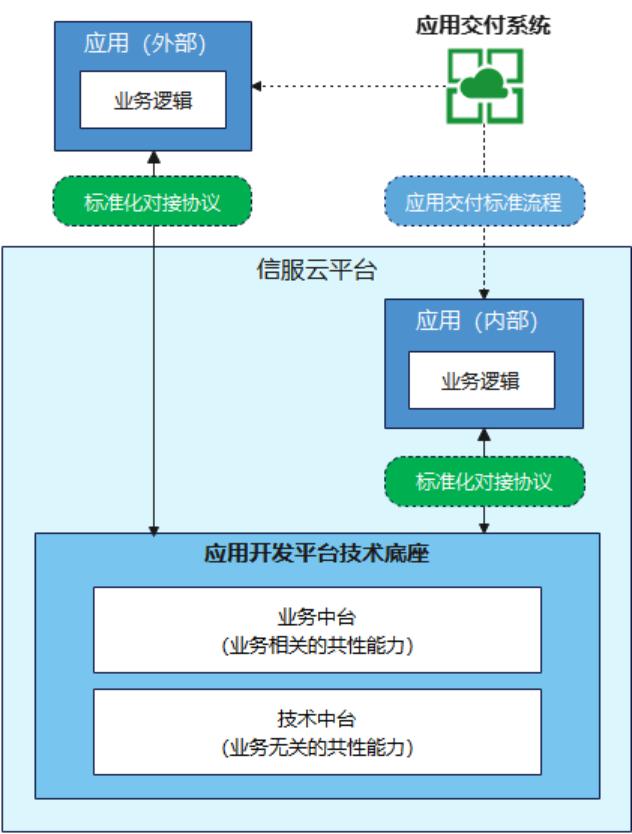 相较于业界的应用开平台,信服云应用开发平台更关注旧架构的传统应用与新应用的兼容,具备开放度高、接入简单、可观测性强等特点。