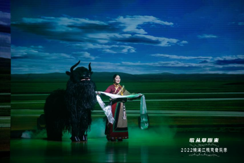 藏、汉双语演唱的歌曲《我和我的祖国》,唱出了藏族儿女感恩祖国的心声,由著名的牦牛革命为背景创作的情景歌舞《红色草原》,再现了红军长征路上爬雪山过草地的军民鱼水情。