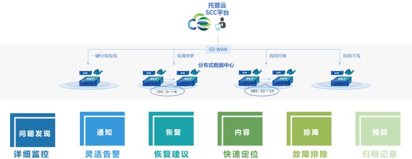 托管云SCC管理中心统一运维、远程升级乃至应用推送,副中心无需专业IT人员,采用自动化的手段,降低总部人员对大量边缘节点的运维的难度。分支节点开箱即用,新业务上线时间缩短70%,日常运维效率提升50%以上。