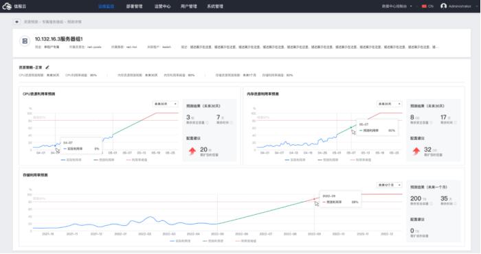 “资源预测”功能在增加用户对计算、存储资源未来风险感知能力的同时,提供了明确的资源配置建议,降低因资源不足导致的故障发生频率,提前规避因业务不足导致的业务中断或资源过剩造成成本上升的问题。