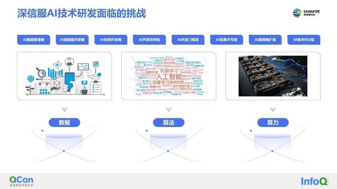 近日,QCon全球软件开发大会在广州举办。QCon全球软件开发大会是由极客邦科技旗下 InfoQ 中国主办的综合性技术盛会,大会举办至今,已经有阿里巴巴、Google等来自国内外头部知名科技公司数万名资深工程师进行过技术分享。深信服工程技术部AI研发平台负责人孟宾宾受邀参加大会,并在现场带来《数算工程一体化机器学习开发平台助力AI算法敏捷开发》的主题演讲。本次演讲重点分享了深信服AI平台团队多年AI研发的实战经验。以下是他的演讲内容摘要。