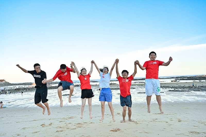 8月12日傍晚,结营仪式在海边举行,同学们面对大海恣意奔跑,感受无边宽广,体会“一片汪洋都不见,知向谁边?”的豪迈和勇气。赵新感慨:“太开心了,这次研学给我带来了太多的第一次,第一次坐飞机,第一次离开我家那个城市,第一次见到武大靖, 第一次见到海,第一次攀岩……这几天收获满满,这会成为我最美好的回忆!”