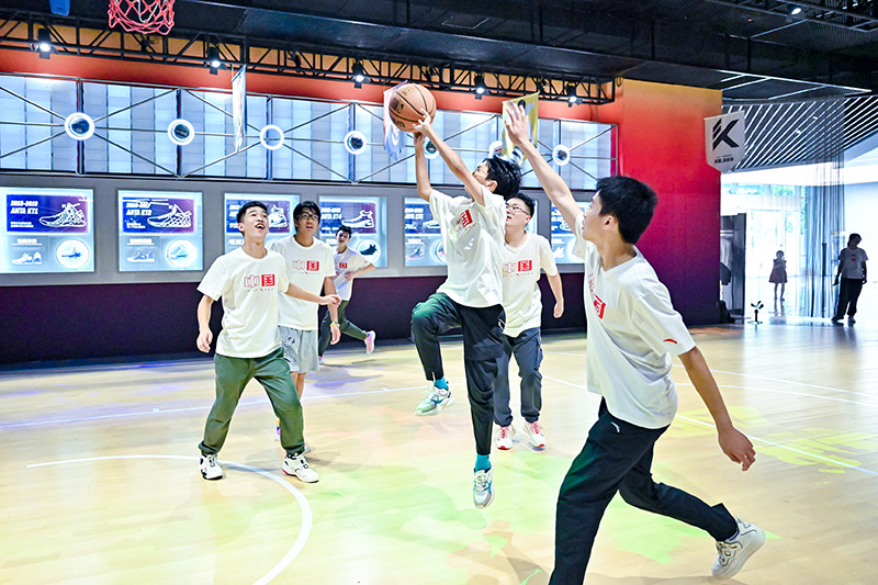 图:学生们在安踏982创动空间 打篮球