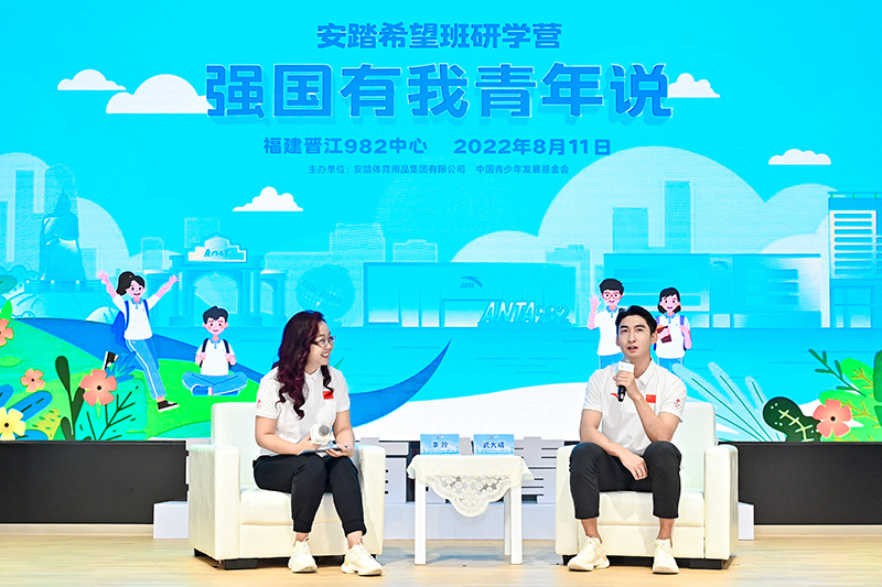 8月11日上午,研学营“强国有我青年说”主题活动在安踏982中心举行。中国青少年发展基金会副秘书长张华伟、安踏集团副总裁李玲以及短道速滑奥运冠军武大靖等嘉宾出席。中国青少年发展基金会副秘书长张华伟在致辞中表示,青年是国家的未来,也是世界的未来。我们更需要发挥教育在人类、社会和经济发展中的基础性作用。安踏希望班公益项目在此背景下应运而生,为青少年在学习生活上提供更好的帮助。希望新时代的青年不忘初心,牢记使命,以梦为马,不负韶华。
