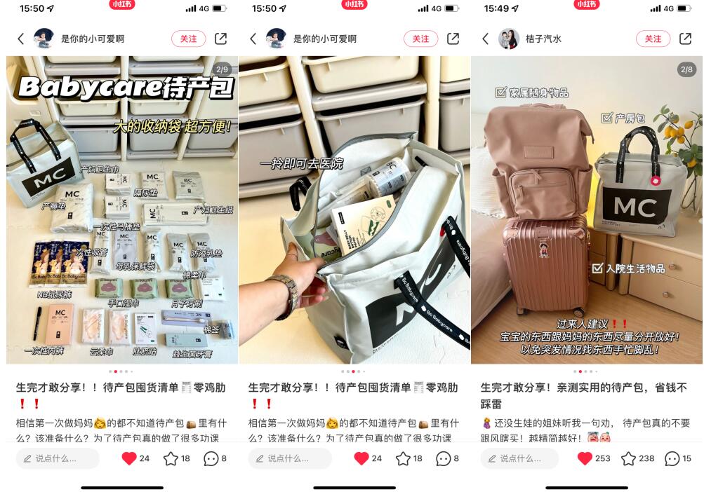 结合Babycare在母婴赛道的全品类产品线布局,小红书瞄准「待产包」类目的心智空缺,帮助Babycare以此为切入口,在母婴人群早期完成品牌触达。从普遍的情绪洞察出发,Babycare用待产包缓解孕期人群在产品选择上的焦虑,快速建立起用户信任,培养起用户对品牌的消费惯性。