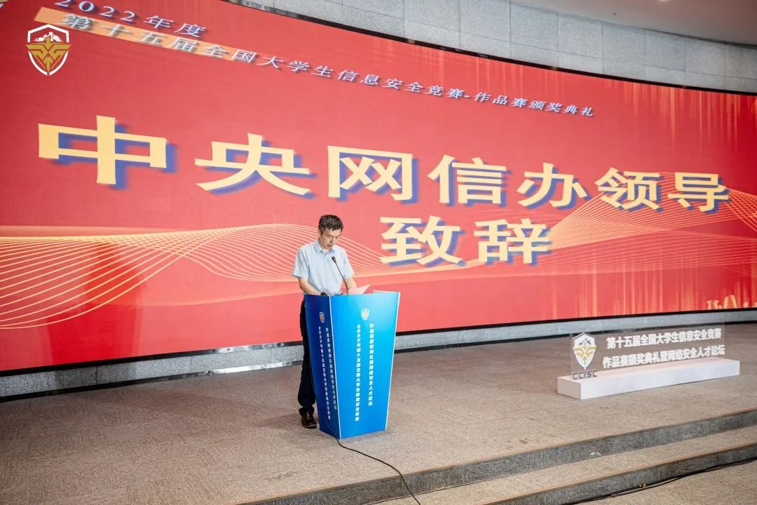 8月22日,由中国互联网发展基金会、国家网络安全人才与创新基地、长沙市人民政府主办,湖南大学承办的2022年第十五届全国大学生信息安全竞赛-作品赛颁奖典礼暨网络安全人才论坛在国家网络安全产业园(长沙)圆满结束。该竞赛已连续举办15届,是我国级别最高、覆盖范围最广、影响力最大的大学生信息安全类竞赛,深信服作为大赛支撑单位,组织并参与大赛评审工作。深信服科技副总裁李洋受邀出席颁奖典礼,并在论坛上做主题报告。