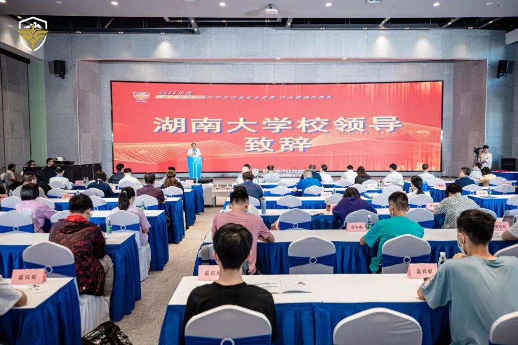湖南省政协副主席张大方、中央网信办网络安全协调局二级巡视员张胜、长沙市副市长肖正波、湖南大学副校长李树涛等领导出席会议并致辞。中国工程院院士、教指委名誉主任沈昌祥院士在线致辞,希望同学们保持对网络安全的学习热情和创新能力,并对此次政校企联合办赛创新模式表示认可。之后由教育部高等学校网络空间安全专业教学指导委员会秘书长、北京电子科技学院副校长封化民教授宣布本次大赛获奖名单。