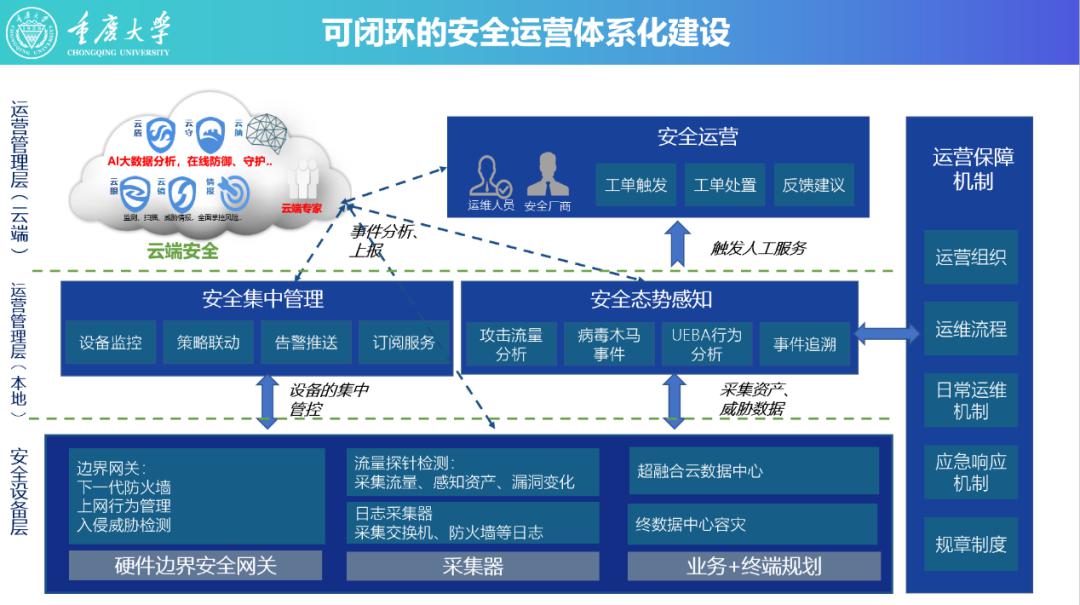 从顶层规划上,设计“技术+管理+运营+保障”四位一体的安全体系,对重庆大学来说是一次有益的尝试。
