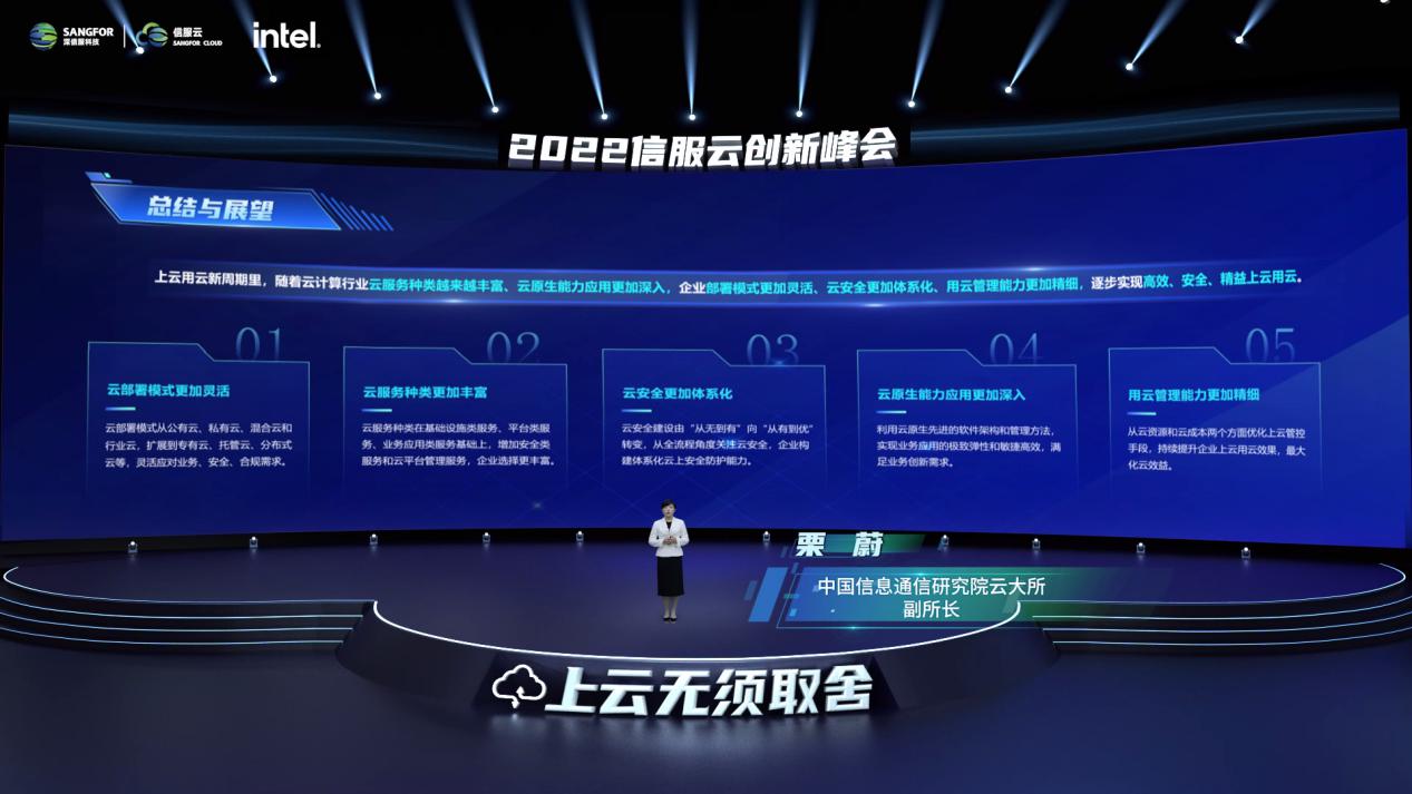 近日,在由深信服举办的“上云无须取舍·2022信服云创新峰会”上,中国信通院云大所副所长栗蔚发表《企业上云用云新趋势》主题演讲。栗蔚介绍了新经济下上云用云发展的新周期、以及新周期下云计算发展的重点,栗蔚认为,云计算是企业敏捷基础设施的一个重要的选择,包括托管云在内的混合部署模式,也逐渐成为上云用云新趋势。
