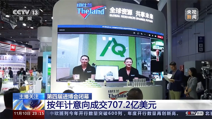 2020年11月6日,拥有AQ溯源标识的纽仕兰青草散养3F牛奶如期送抵第三届中国国际进博会纽仕兰展台现场。通过跨洋大直播的方式,纽仕兰现场连线AsureQuality的专家,共同向广大消费者展示了用新西兰更低碳的牛奶供应链系统生产出的纯牛奶。