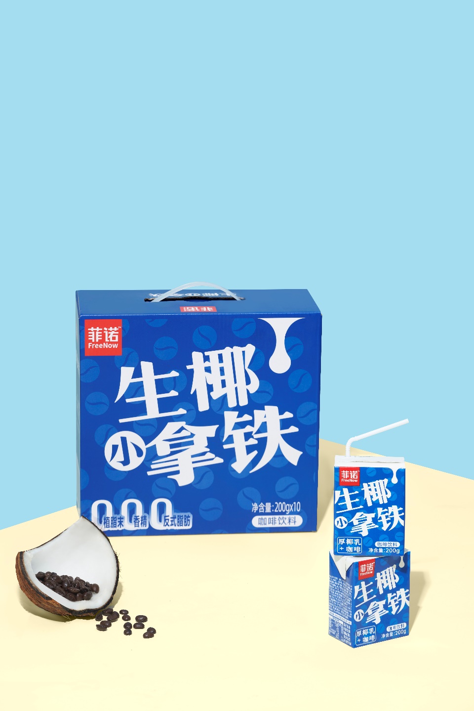 除此之外,为了覆盖更多元的场景,菲诺在C端推出了直饮产品,在今年5月推出了菲诺生椰小拿铁;10月,又推出了一步到“味”的厚椰乳+冻干咖啡粉的菲诺生椰拿铁组合装。相比于需要调饮的厚椰乳,专为C端消费者研发的直饮产品饮用更便捷、口味更丰富,可以满足更多场景下的丰富需求。也获得了来自消费者的直接认可:菲诺“小菲诺”(生椰小拿铁与零糖小椰乳)系列产品上线半年,销售额已突破1个亿。
