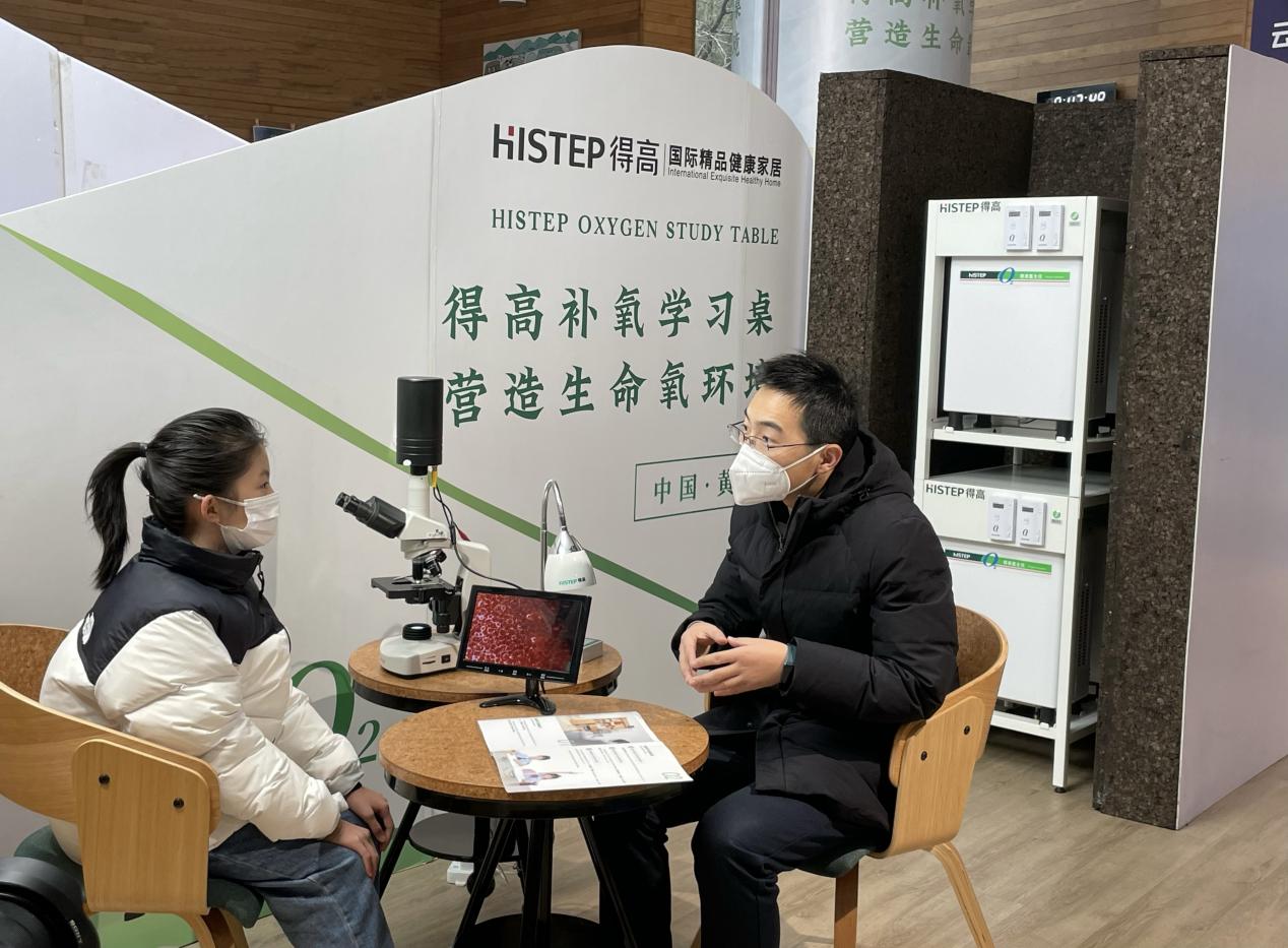 在10余年制氧研究基础上,得高氧生科技研发团队通过高科技制氧技术赋能学习桌,创新研制出以氧补脑助力成长黄金期的国内第一代补氧学习桌,为青少年学习提供了强大内驱力。Get教育科技展会上,得高补氧学习桌展现了强大的市场竞争力,弥散式出氧端口专利、人机分离式设计、特色软木桌椅等特色广受用户认同,血氧细胞实验更让观众直观看到并感受到吸氧前后的机体变化,反响十分热烈。