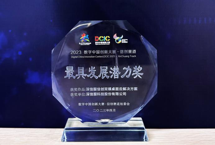 在“2023数字中国创新大赛·信创赛道”中,深信服信创双模桌面云解决方案荣获最具发展潜力奖(全国仅10个)。