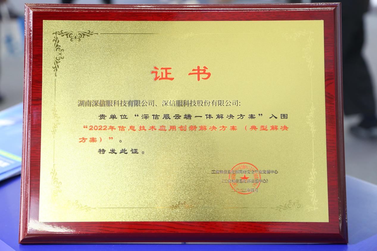 在数字产业论坛上,由工业和信息化部信息中心发布的“2022年数字技术融合创新应用解决方案成果”中,深信服云端一体机解决方案荣获“2022年信息技术应用创新典型解决方案”。