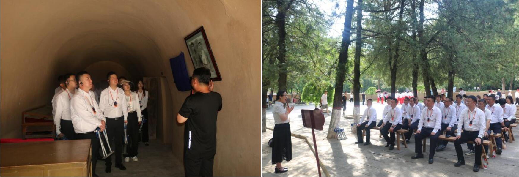 第三站,追寻革命足迹,走进王家坪,感受革命文化。唱红歌学习革命历史,打腰鼓传承红色基因。党的二十大报告明确要求“始终保持同人民群众的血肉。党的百年发展历程,中国共产党在同人民群众的密切联系中产生、发展和壮大。公司邀请到延安市委党校副教授、延安市首届干部教育培训优秀骨干教师杨芳讲授二十大专题党课。