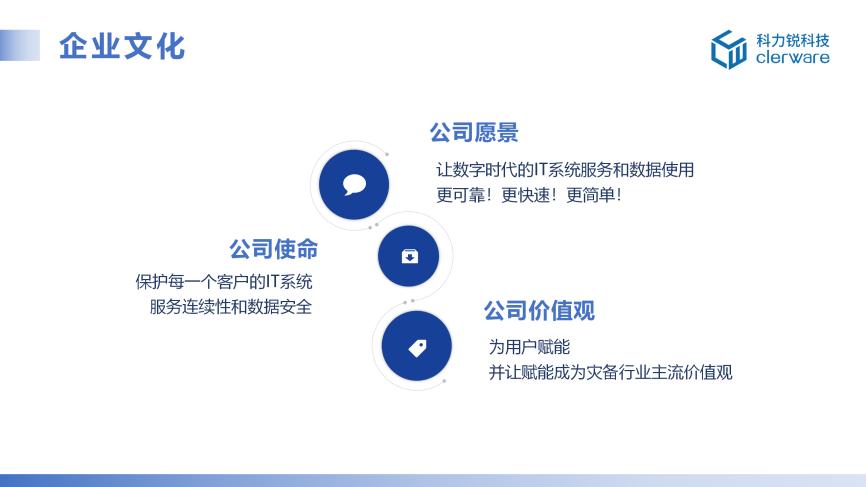 为用户赋能,让用户拥有自主的灾备系统运营、管理和应急恢复能力;让主机可以带毒运行拒绝被勒索,让数据可以不被窃取拒绝被威胁,并让赋能成为行业的主流价值观!