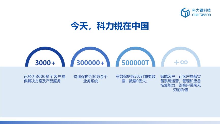 目前科力锐在全国 20+ 个省市设立有办事处,已经为3000+客户提供解决方案及产品服务,行业全面覆盖政府、企业、医疗、高校等,持续保护近30万余个业务系统,有效保护近50万T重要数据,数据零丢失!
