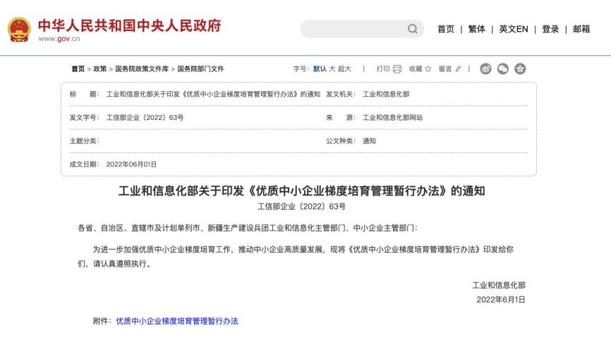 根据《优质中小企业梯度培育管理暂行办法》的通知(工信部企业〔2022〕63号),专精特新“小巨人”企业位于产业链关键环节,坚持专业化发展道路。长期专注并深耕于围绕重点产业链实现关键基础技术和产品的产业化应用,重视并实施长期发展战略,公司治理规范、信誉良好、社会责任感强,生产技术、工艺及产品质量性能国内领先,技术和产品有自身独特优势,拥有直接面向市场并具有竞争优势的自主品牌,主导产品在全国细分市场享有较高知名度和影响力。