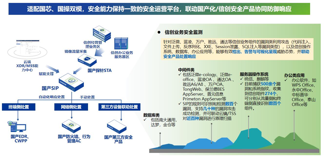 信创资产全面清点、信创漏洞检测与修复、信创操作系统漏洞补丁分发、热点漏洞预警。