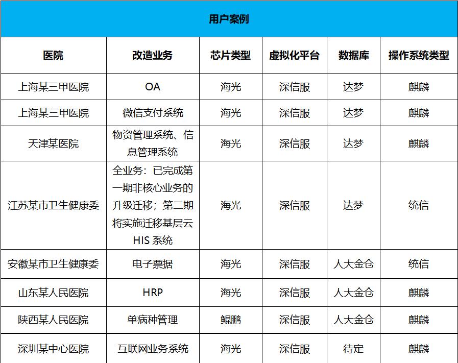 2.各服务厂商看似都提供了技术路线搭配,但是在医院的实际落地案例较少,大量医院的独特业务,如手麻、HRP、EMR、HIS等业务升级难以达到实验室下的“高性能”要求。