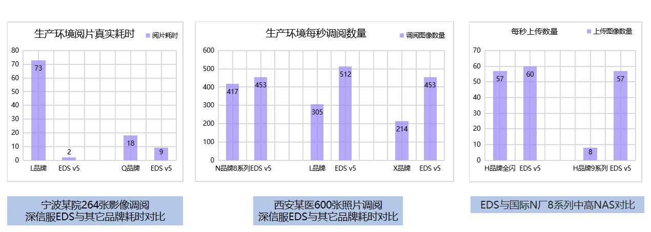 中间图:西安某医600张照片调阅,深信服EDS与其它品牌耗时对比,EDS仅用时一半。