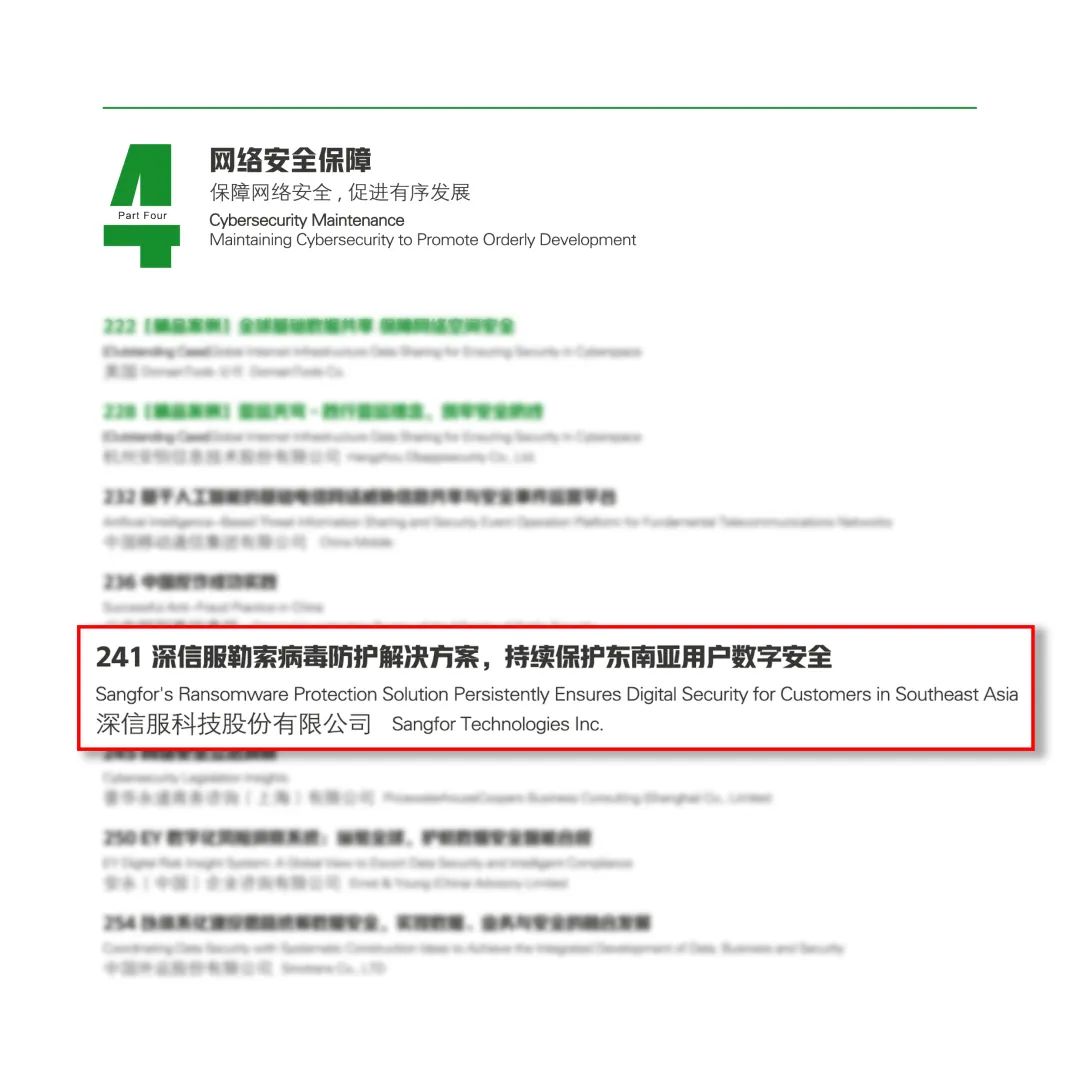 通过"勒索病毒防护解决方案",深信服持续守护东南亚用户数字安全,该案例成功入编《携手构建网络空间命运共同体实践案例集》。