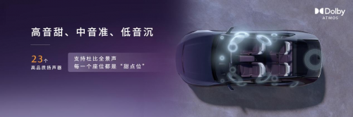 同时,EZ-60搭载了同级领先的23个高品质扬声器,其中,高音扬声器5个,中音扬声器5个,低音扬声器4个,低音炮1个,天空全频扬声器4个,主副驾头枕扬声器4个。支持杜比全景声,以前所未有的层次感、清晰度,让你尽享全方位萦绕的沉浸式影音体验。此外,空间校准技术和声音补偿技术,让每一个座位都是“甜点位”。