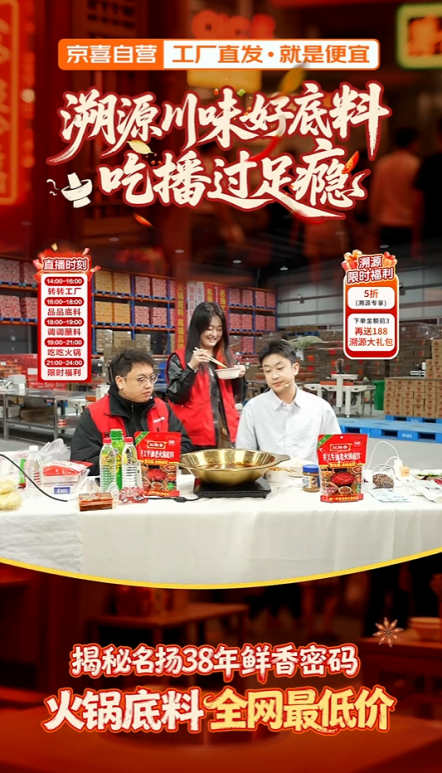 京东京喜自营溯源产业带重庆火锅底料厂 单场直播销售近10万单