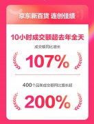 6月7日,京东618迎来以超级爆品 惊喜价不止5折为主题的京东新百货主推日,旗下时尚服饰、品质居家、美妆护肤、运动户外、奢品钟表五大品类在主推日当天全面爆发:10小时成交额超去年全天,全日成交额同比增长107%,400个品类成交额同比增长超200%,超3000个品牌成