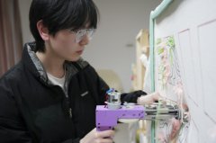 一块布、一张画架、几捆滚落桌旁的毛线,伴随着阵阵突突声,斑斓的毛线被打在画布上,卡通图案慢慢显现这不是纺织车间,而是最近深受年轻人追捧的Tufting手工体验地。 简化繁琐的制作工艺,即便是萌新也能迅速上手,创建在浙财大东方学院众创空间的这间厚涂