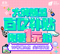 京东11.11百亿补贴11月10日晚8点相约 京东新百货五大品类时尚爆款1元抢